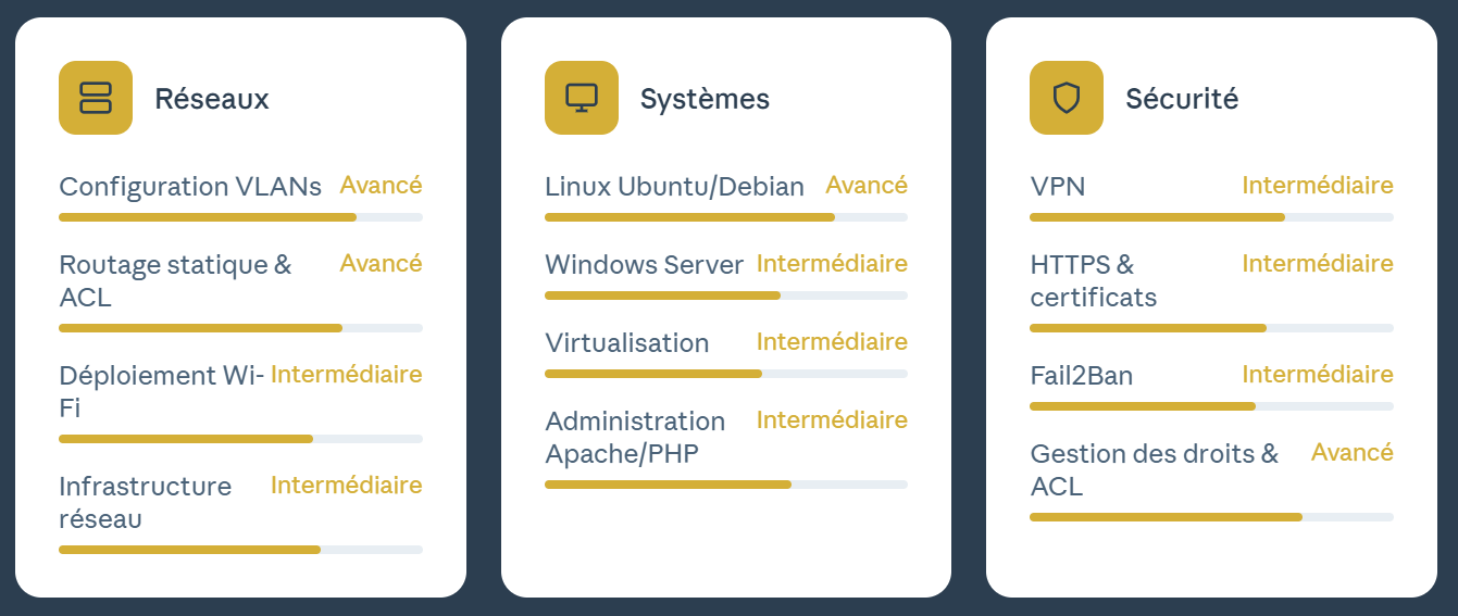 Compétences acquises au cours de ma formation BTS SIO option SISR et de mes projets professionnels.